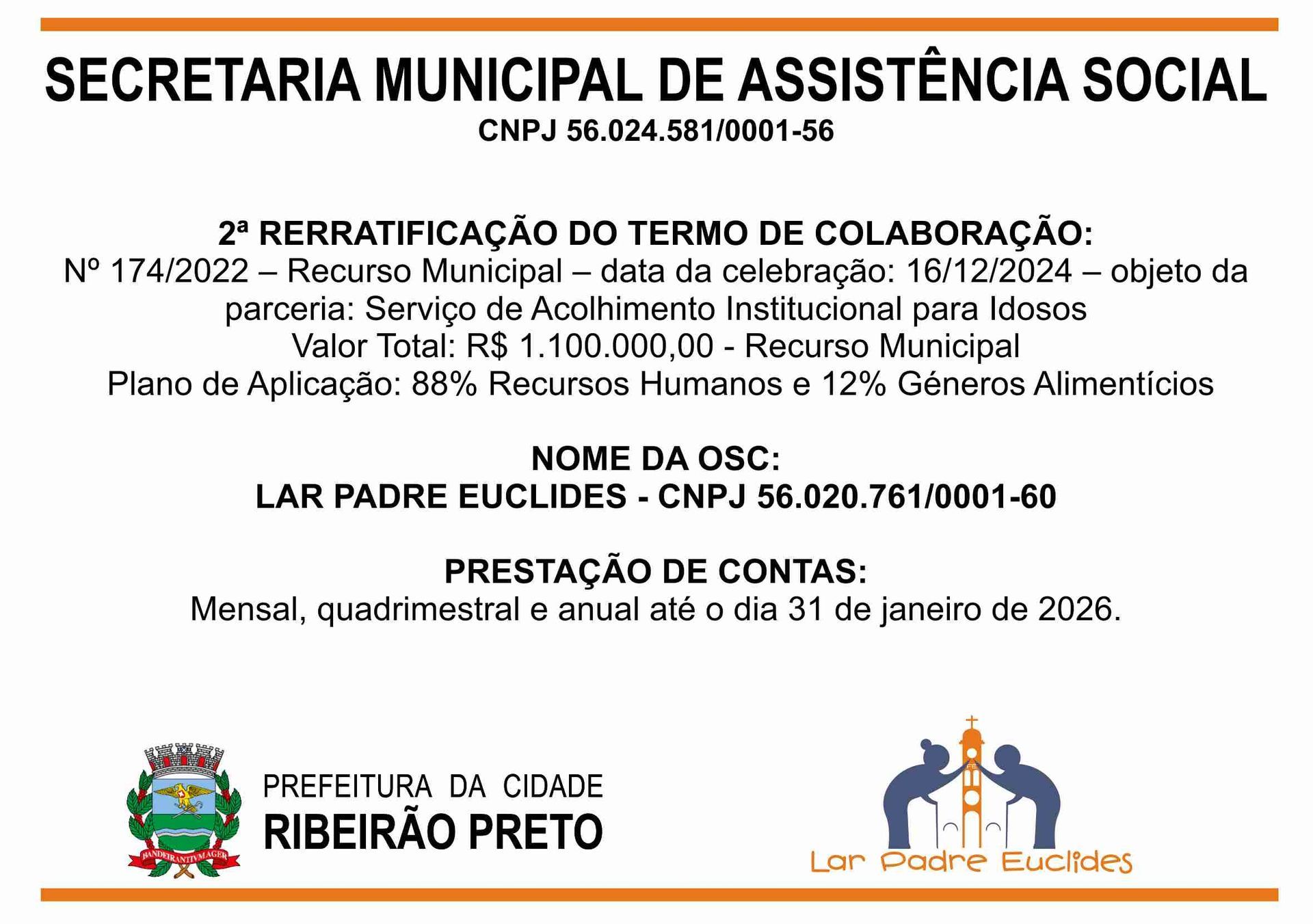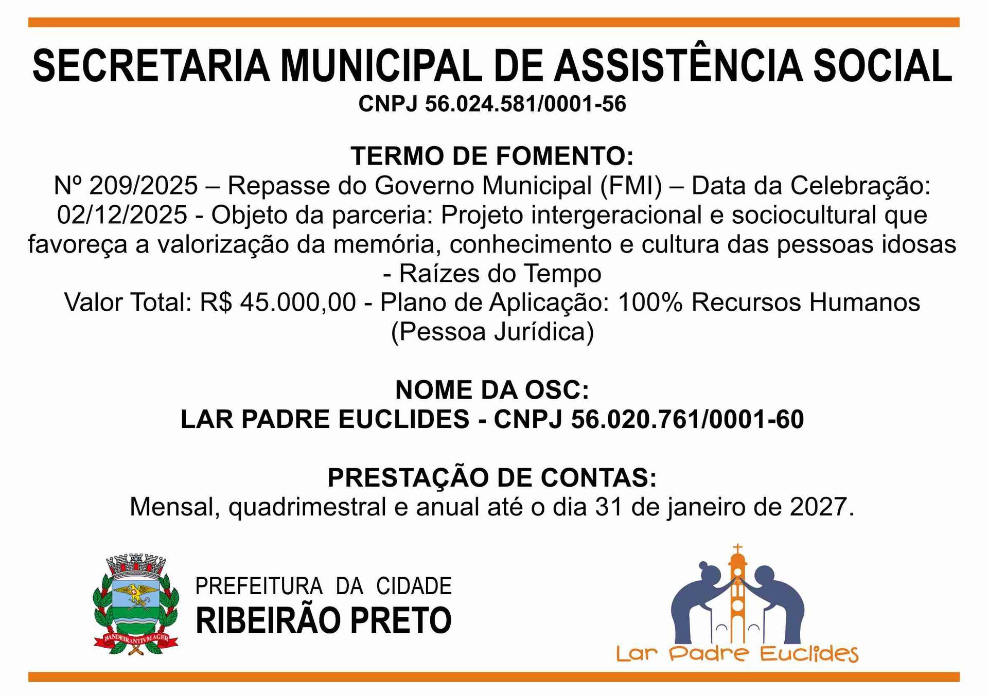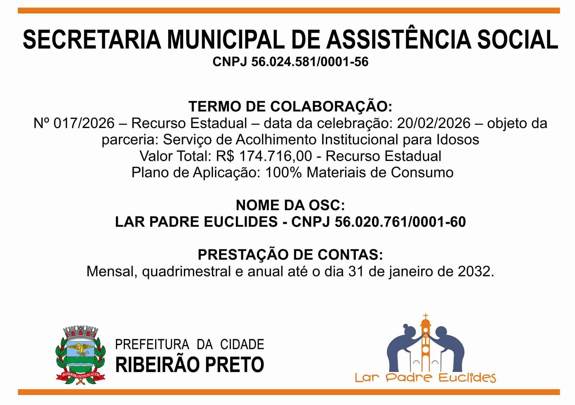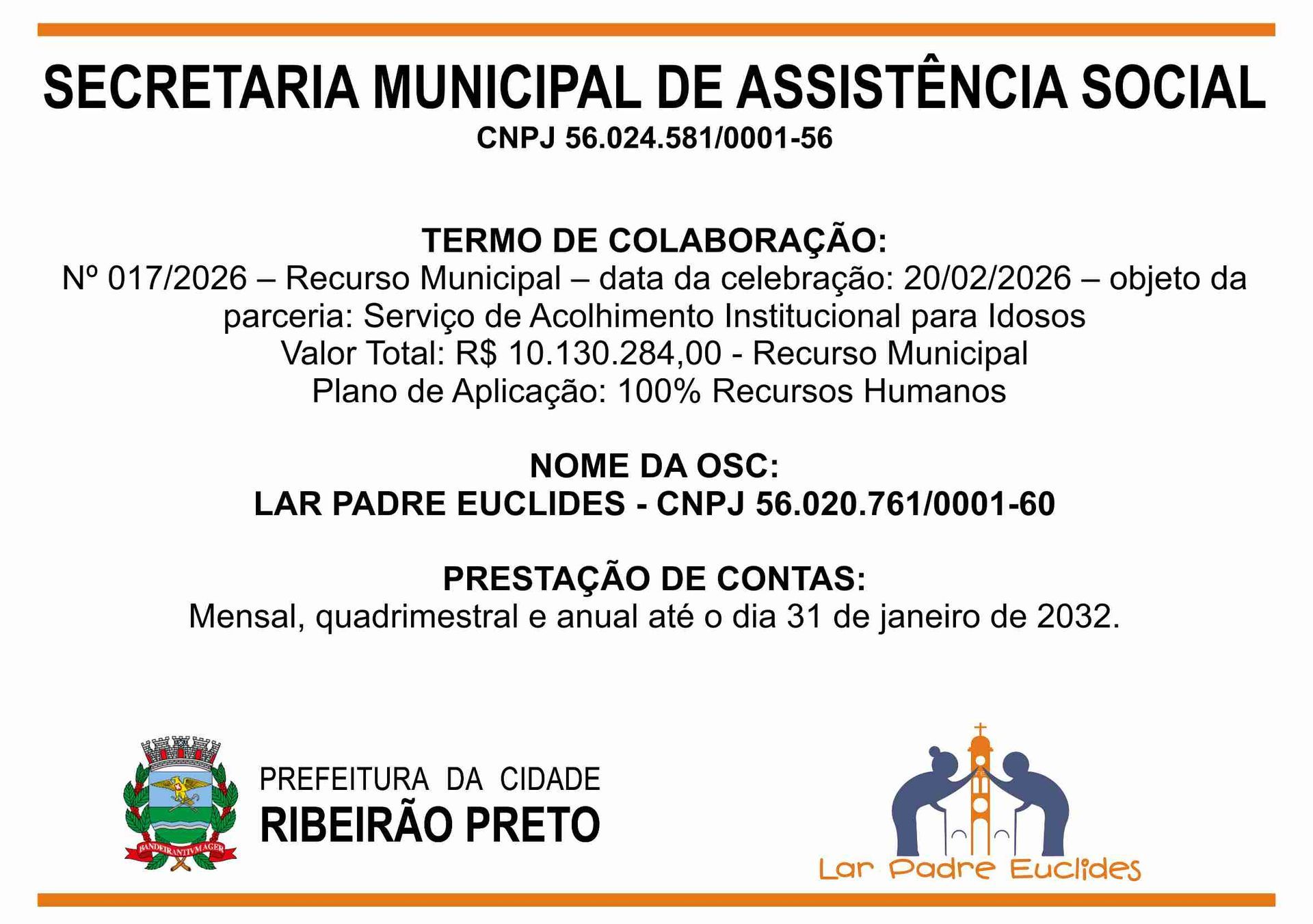 O Lar Padre Euclides, uma Instituição de Longa Permanência de Idosos (ILPI), em conformidade com as leis vigentes, presta conta de todas as receitas e despesas no âmbito de seu funcionamento.