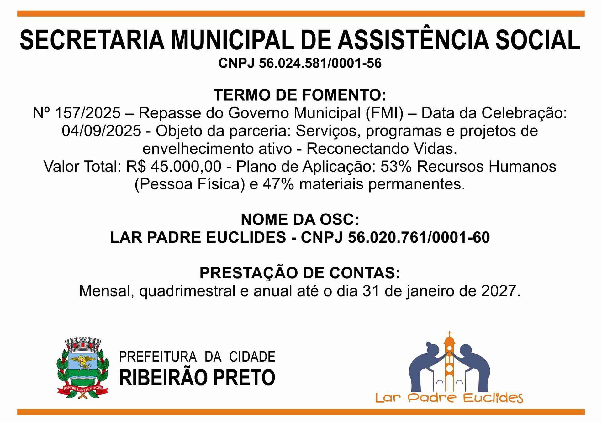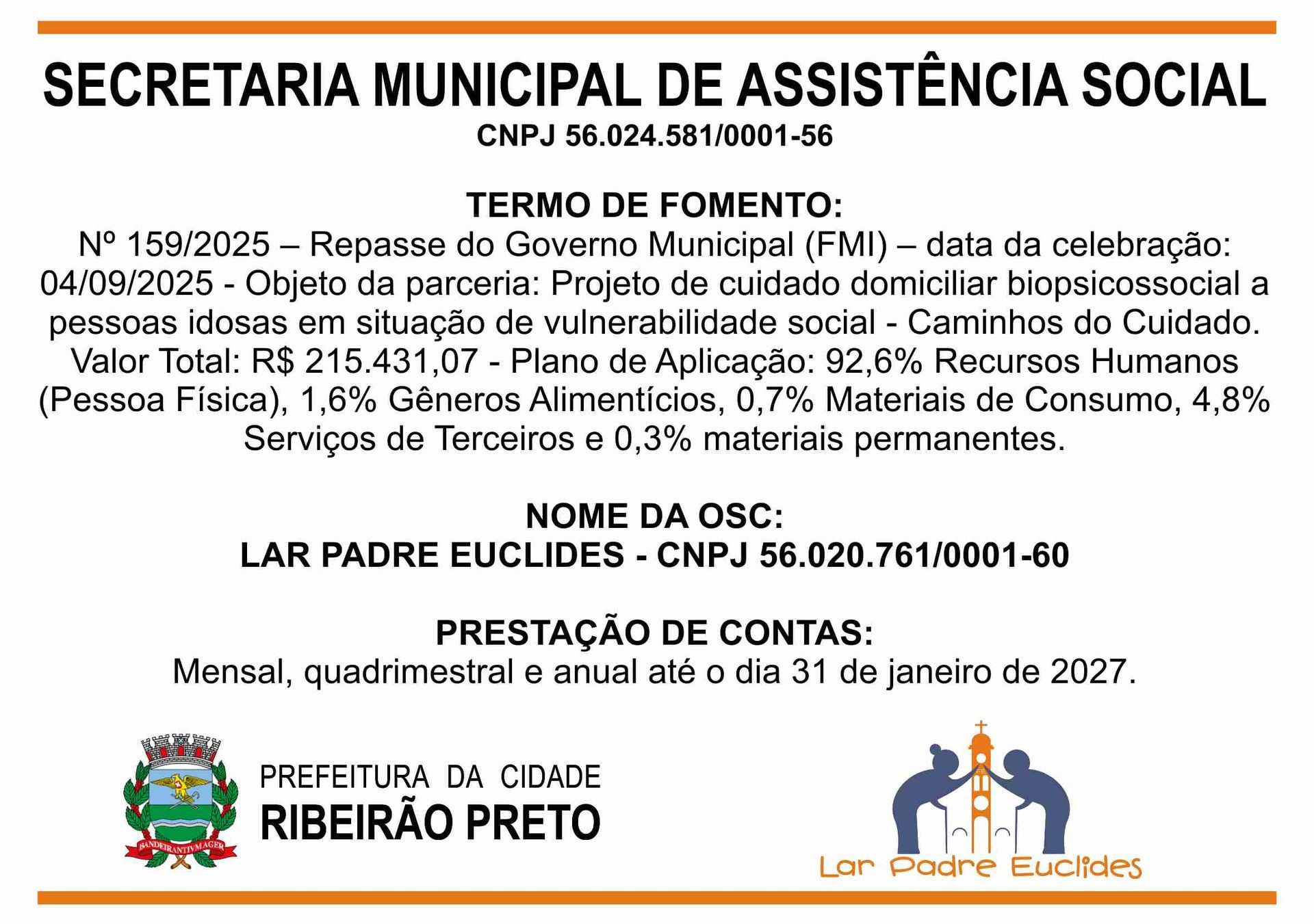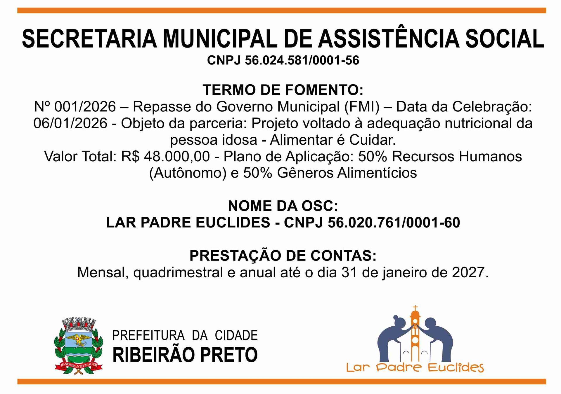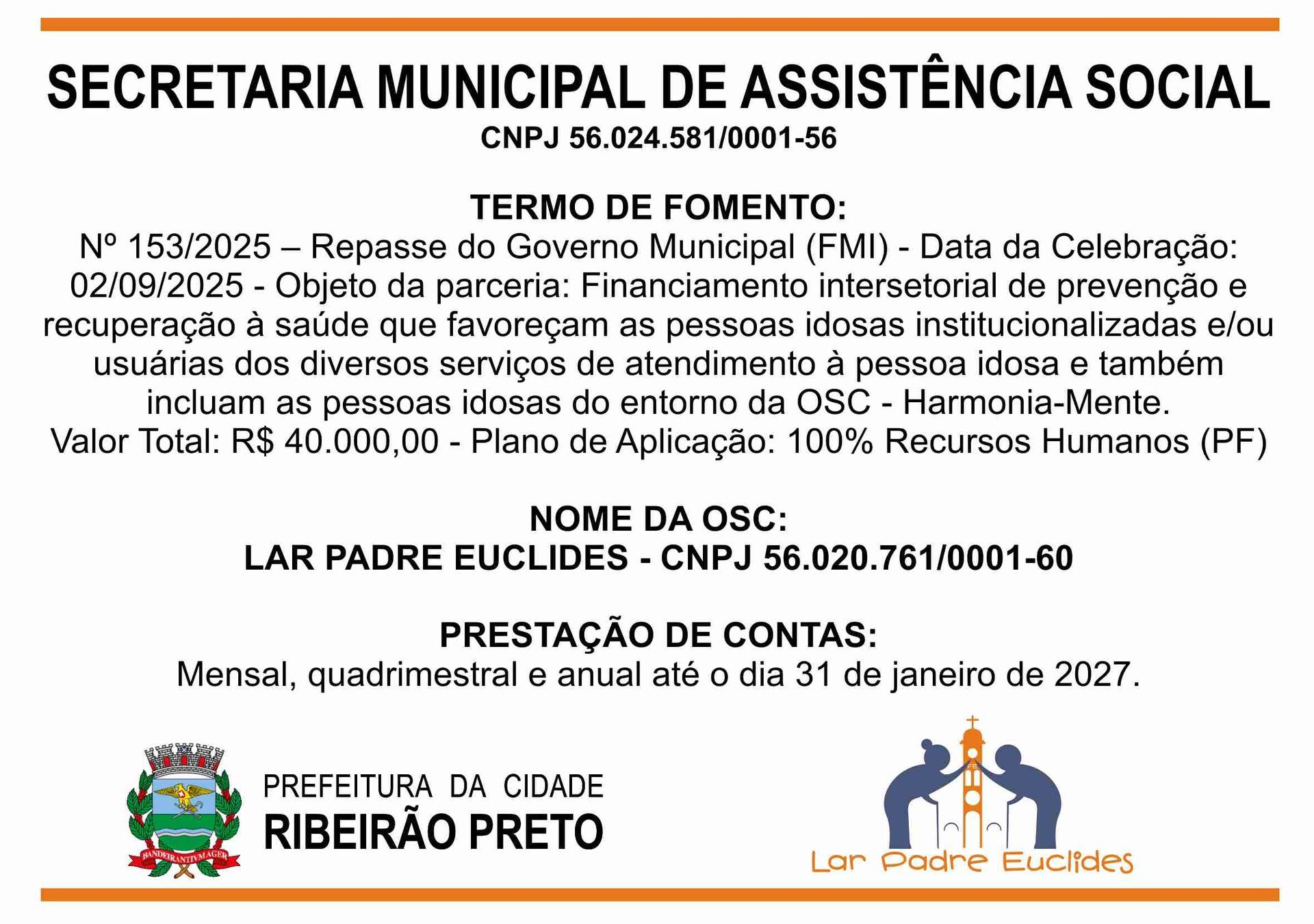 O Lar Padre Euclides, uma Instituição de Longa Permanência de Idosos (ILPI), em conformidade com as leis vigentes, presta conta de todas as receitas e despesas no âmbito de seu funcionamento.