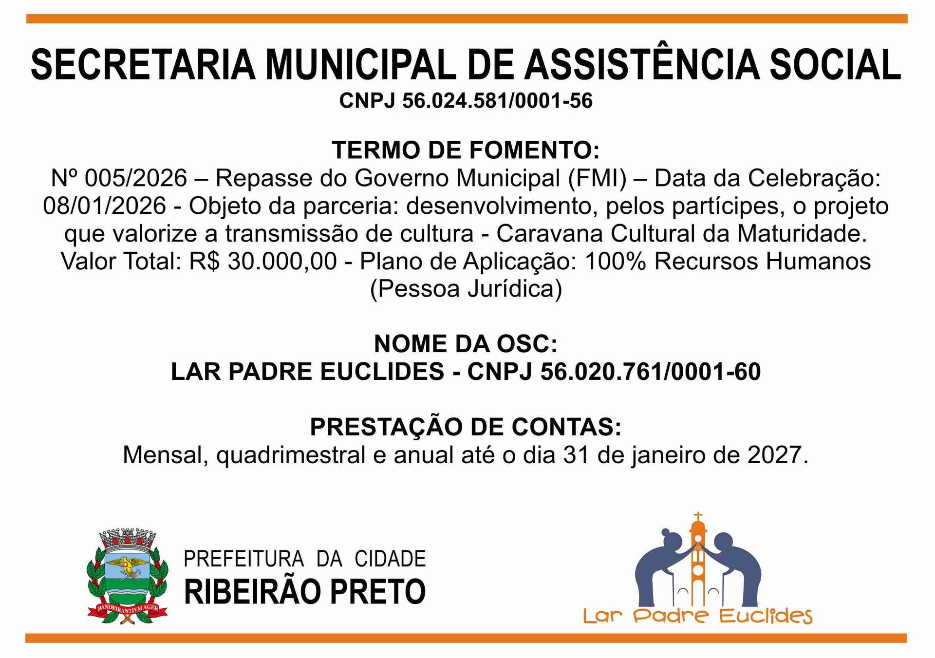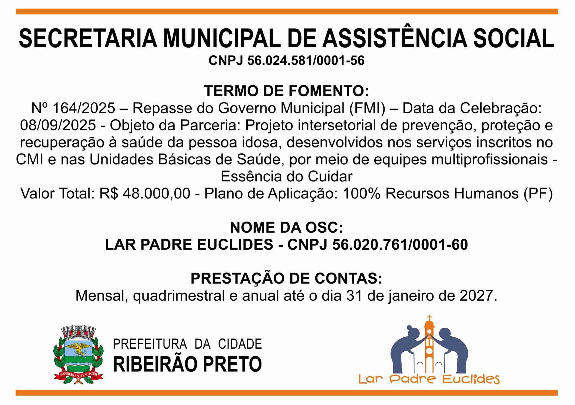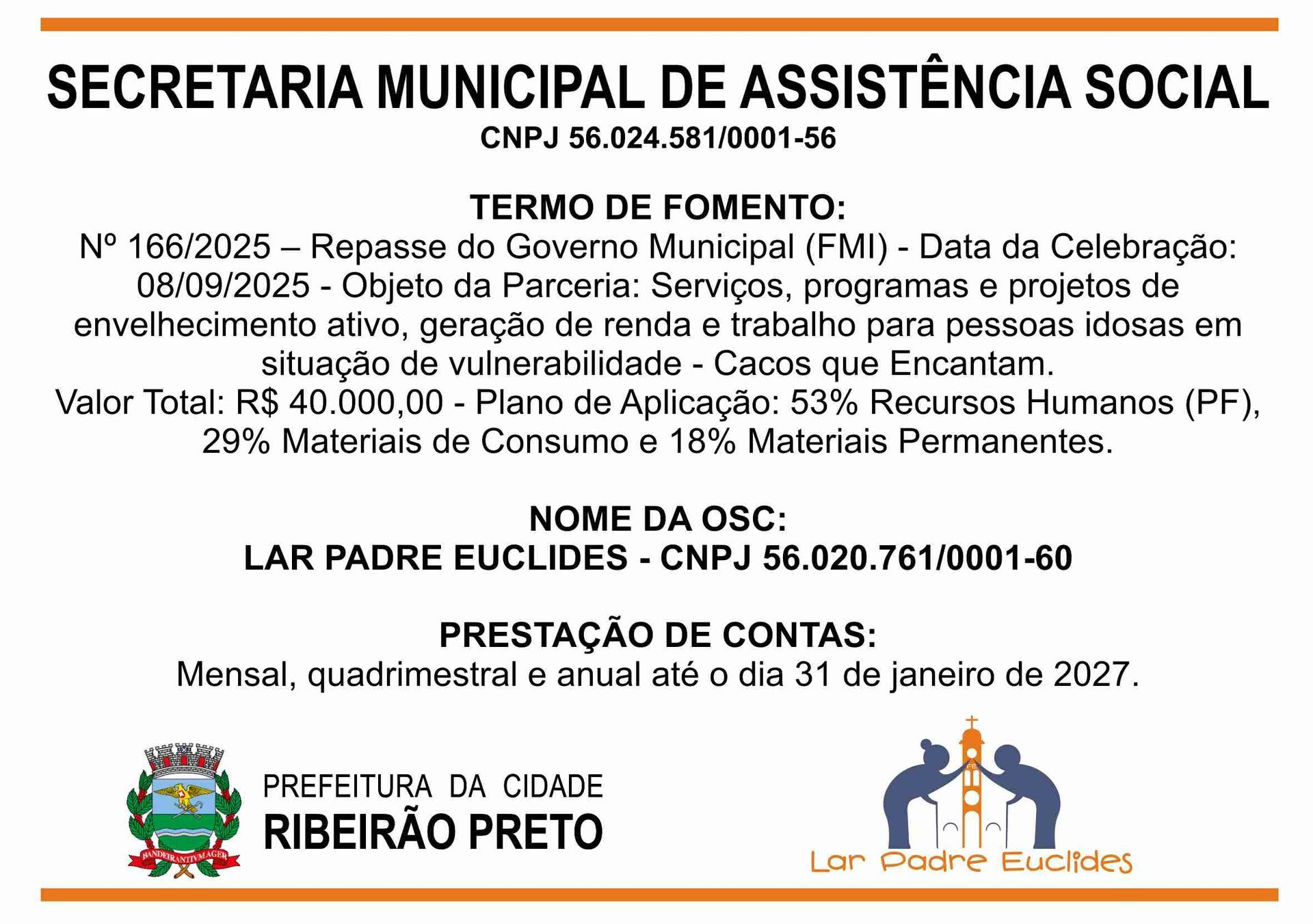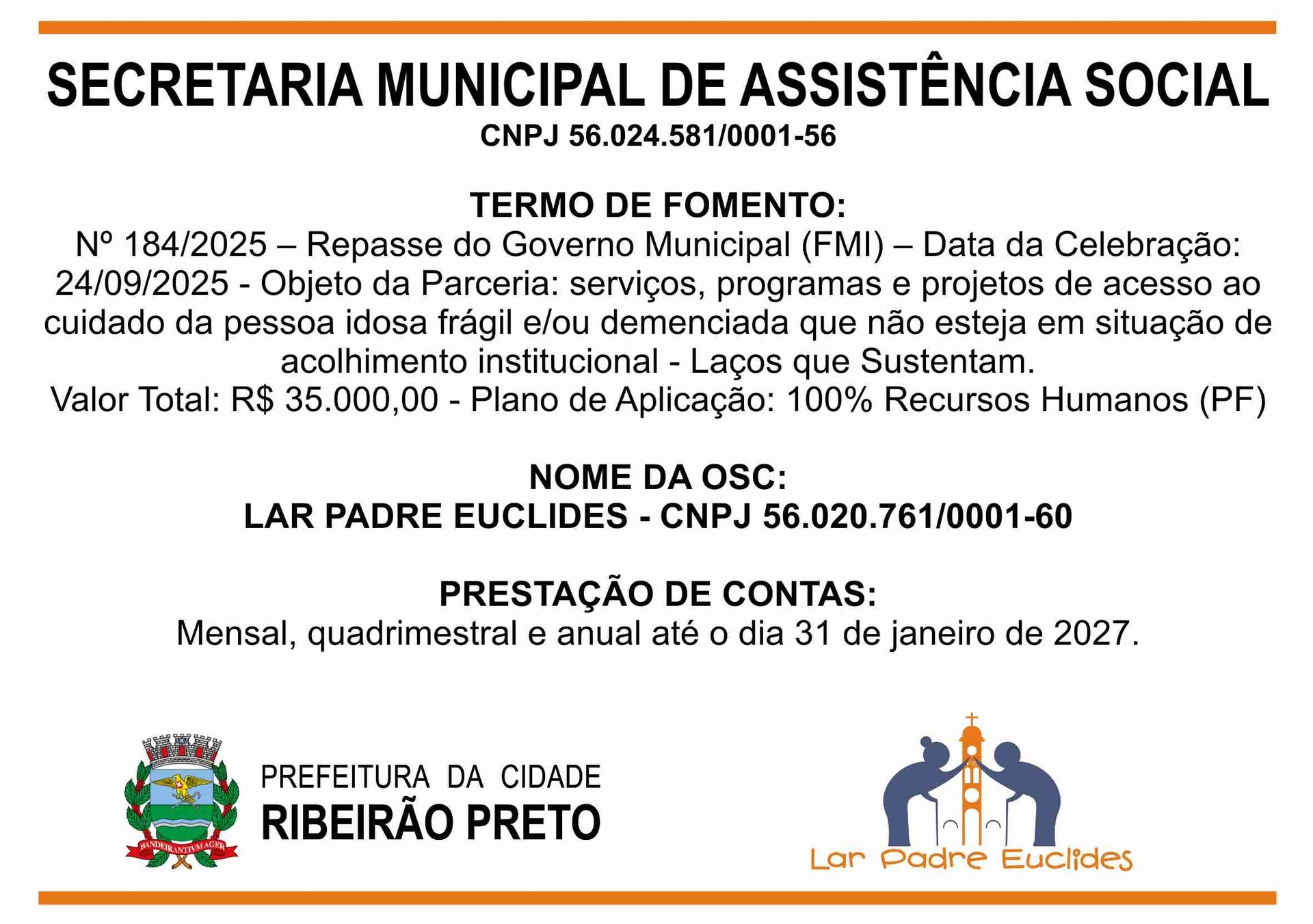 O Lar Padre Euclides, uma Instituição de Longa Permanência de Idosos (ILPI), em conformidade com as leis vigentes, presta conta de todas as receitas e despesas no âmbito de seu funcionamento.