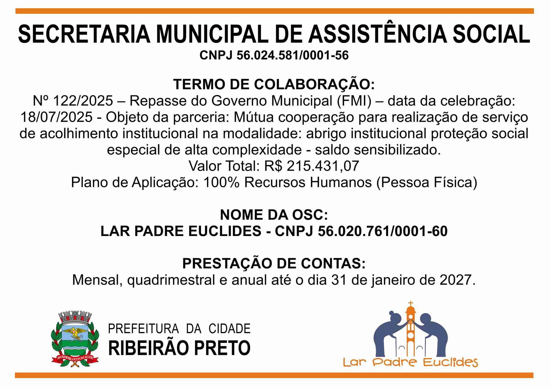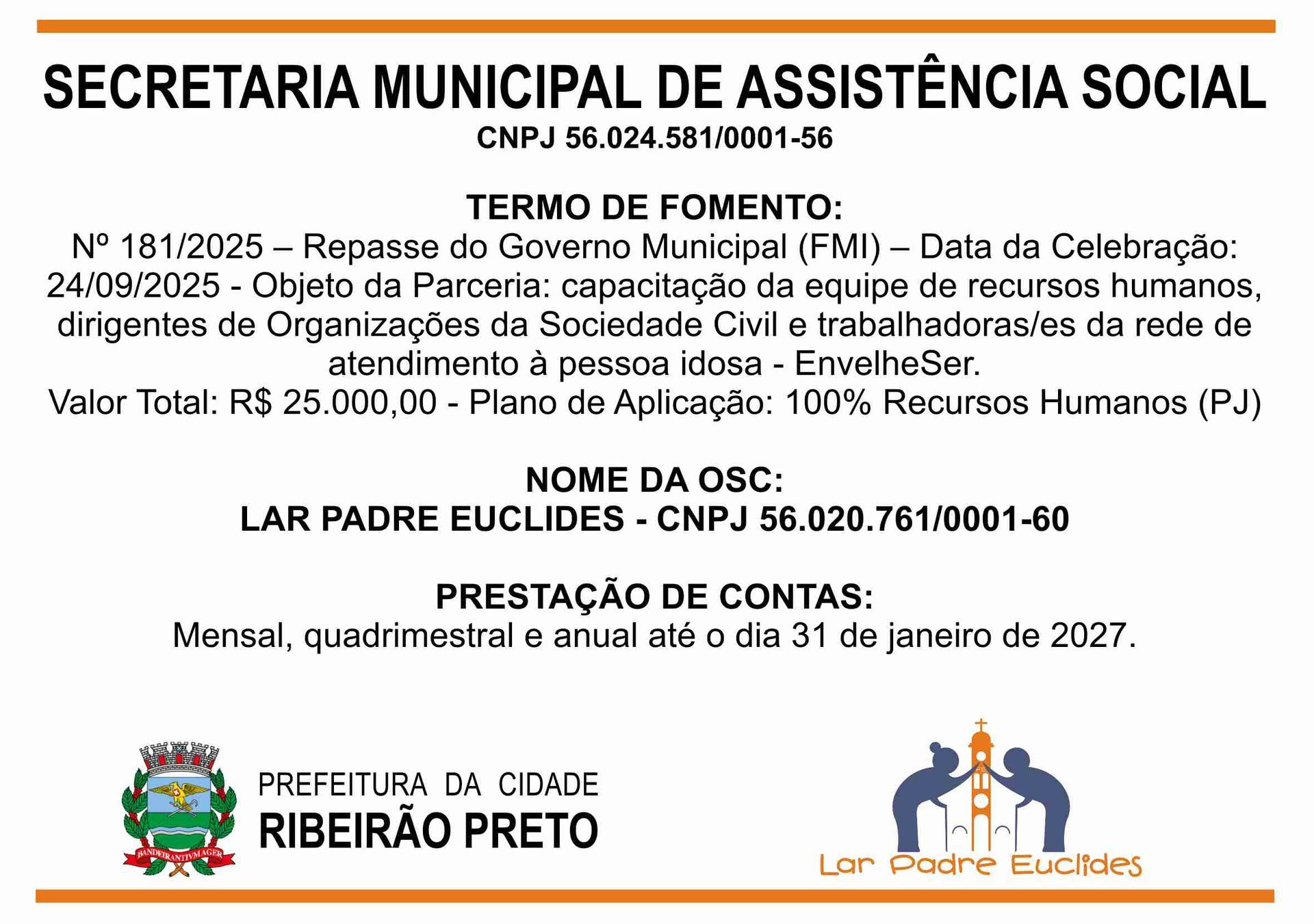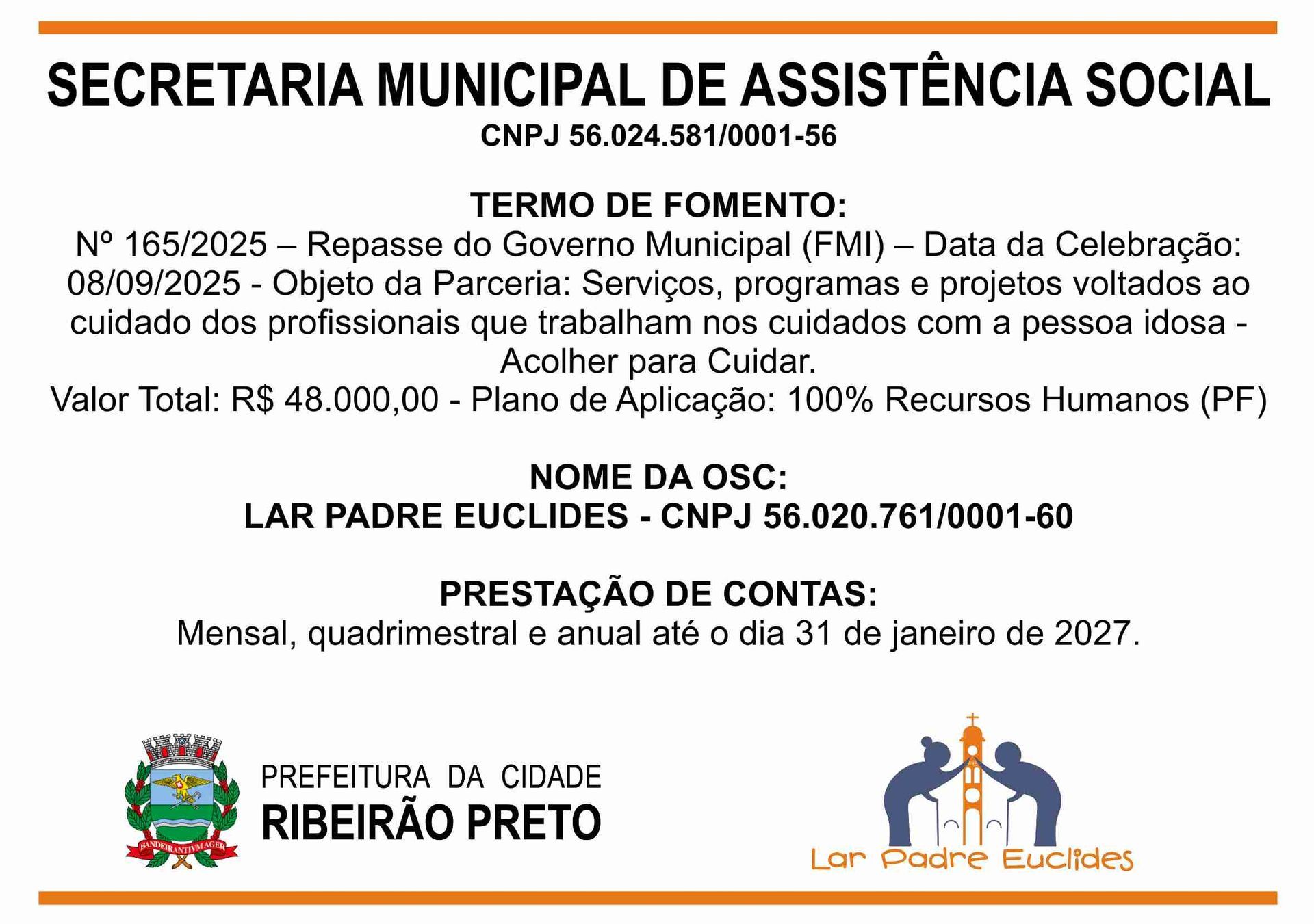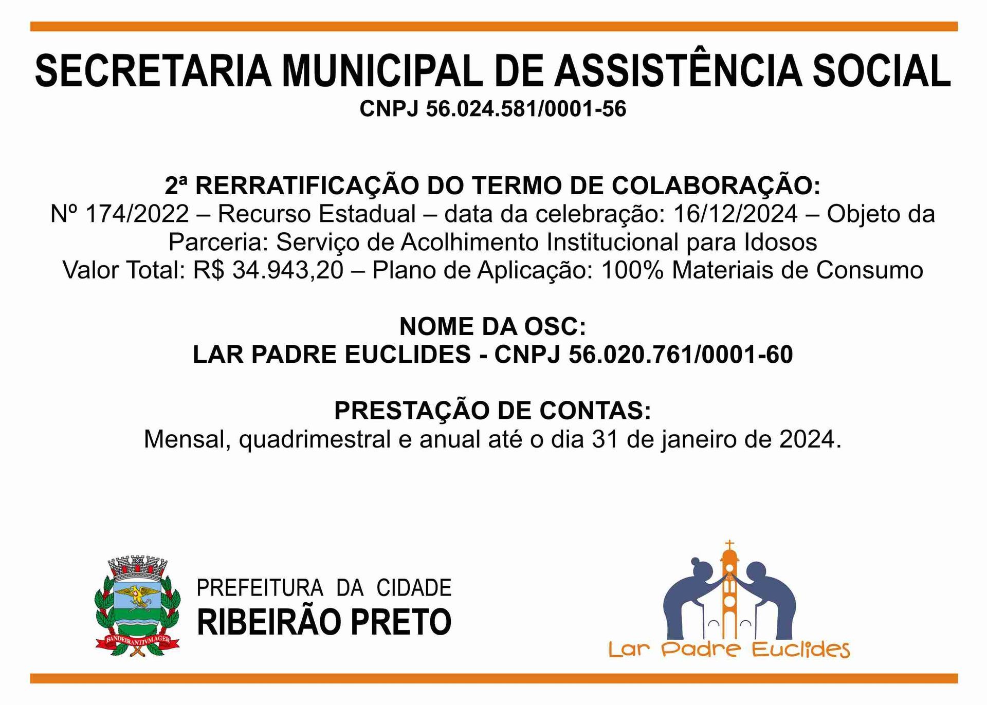 O Lar Padre Euclides, uma Instituição de Longa Permanência de Idosos (ILPI), em conformidade com as leis vigentes, presta conta de todas as receitas e despesas no âmbito de seu funcionamento.